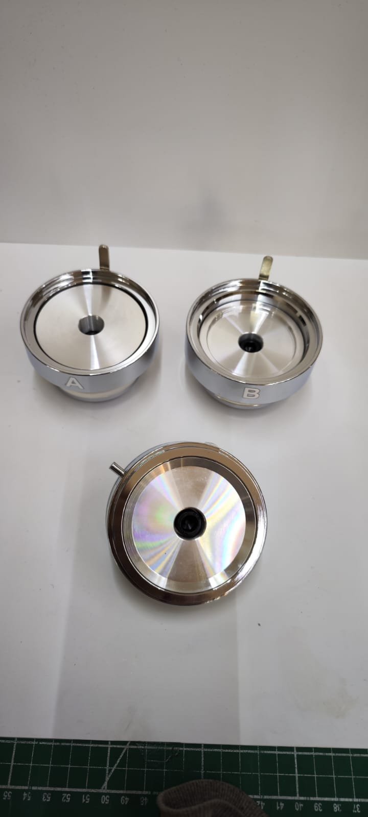 Medidas compatibles con nuestros Herrajes y dados intercambiables, sugeridos en “máquinas y cortadoras para botón” y con Herraje para máquina de dados intercambiables sugerido en “herraje para botón publicitario”
