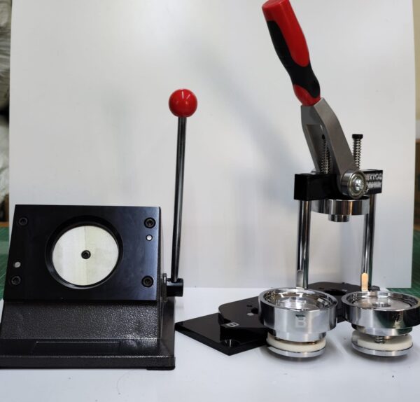 incluye: Máquina de dados intercambiables, dado 5.5cm (puedes comprar los dados en el apartado de “máquinas y cortadoras para botón) , cortador de metal emprendedor, 100 herrajes 5.5cm